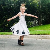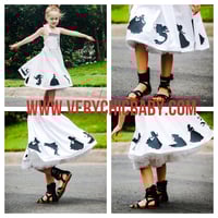 This dress is a VeryChicBaby exclusive design. Each princess is handcut and pressed with a professional grade press on the highest quality heat transfer vinyl. We recommend washing in gentle inside out and hanging to dry as you would with any VCB dress.