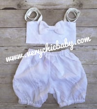 What other style suit can VCB do? I can do any style but right now this is the only style suit we will offer for sale. I like the fact that it will dry quickly and wash well but best of all it's covering my girls bum. These are the perfect addition to your little girls wardrobe because we can coordinate them to your dresses because the bottoms are also going to work as bloomers under your dresses year round..