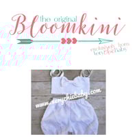 The Edelweiss Bloomkini is old fashioned, sweet & simple. This pattern has been "Blake tested" at the park & playground. :) It is a real-life outfit that is comfortable & doesn't slip off shoulders or get tangled while playing. <3 The fabric is amazing and the back has a ruffle across the bum. The front bow is removable.